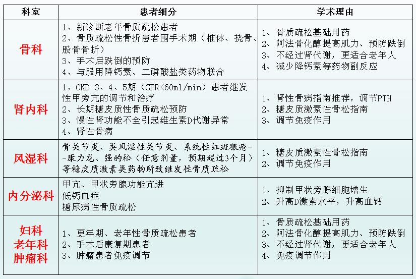 阿法骨化醇軟膠囊(雙鶴)科室患者細分