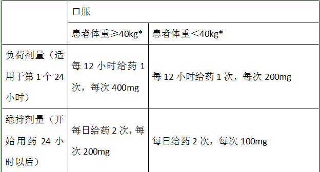 口服給藥,第一天應(yīng)給予首次負(fù)荷劑量,以使其血藥濃度接近于穩(wěn)態(tài)濃度。由于口服制劑的生物利用度很高(96%),在有臨床指征時(shí)口服和靜脈滴注兩種給藥方法可以互換。
