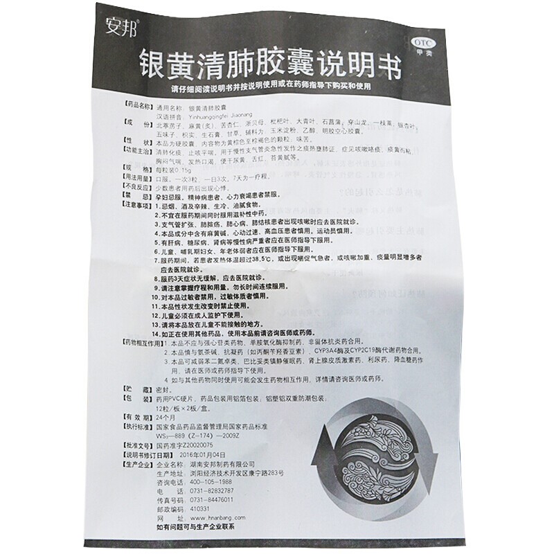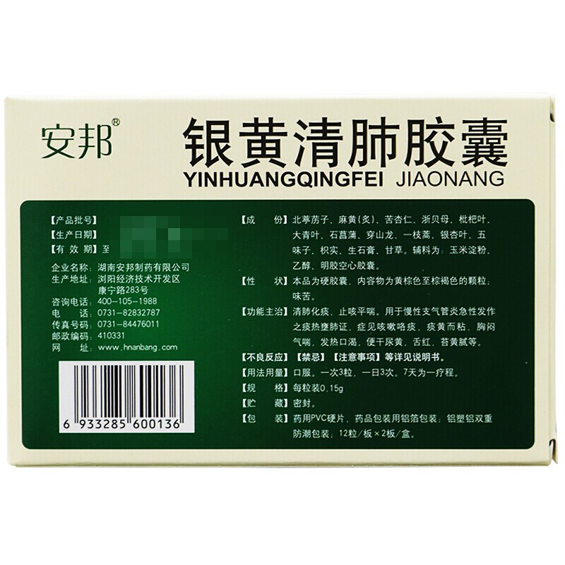 | 藥名品牌 | 銀黃清肺膠囊(安邦) |