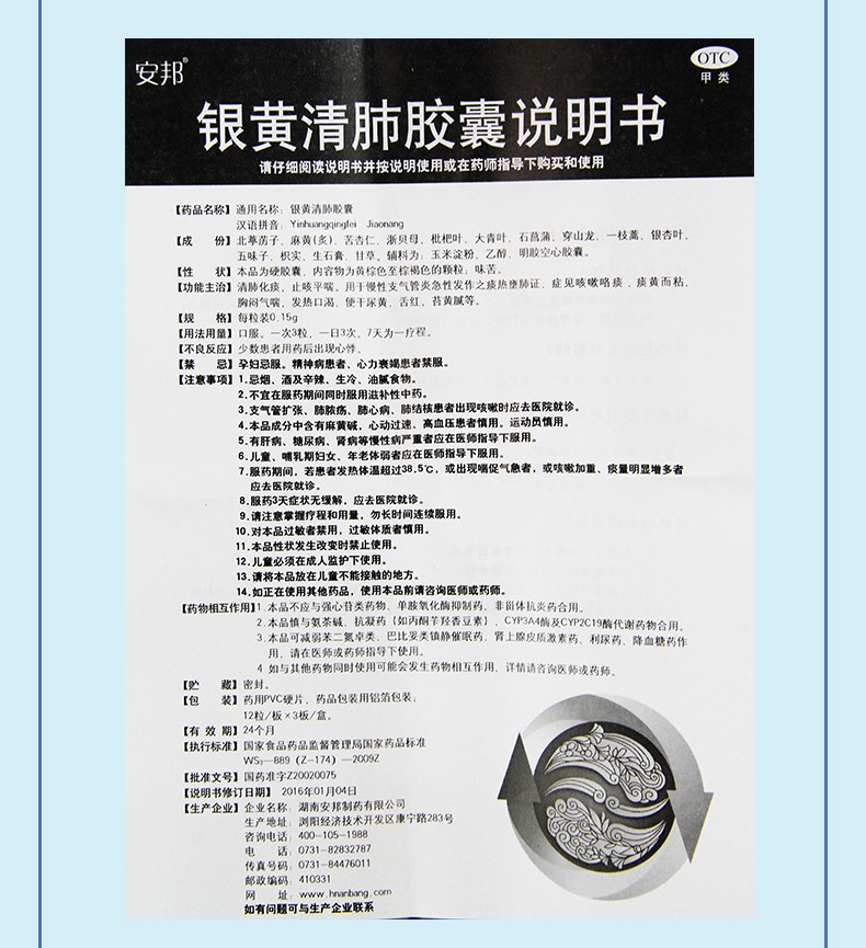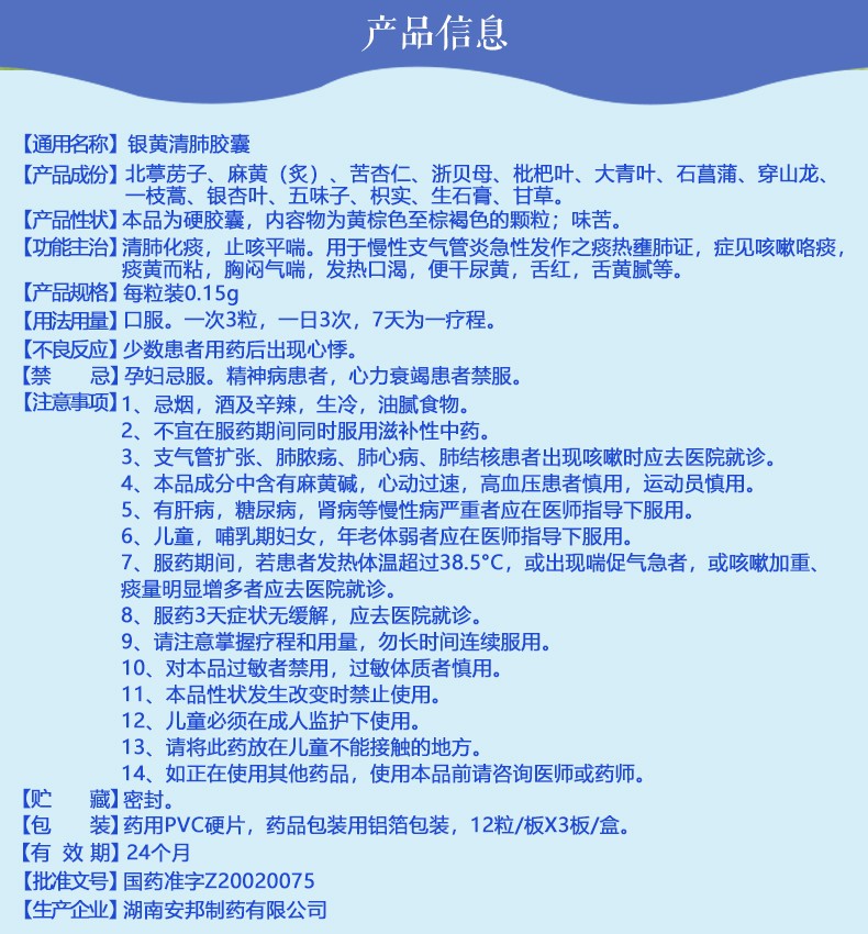 | 藥名品牌 | 銀黃清肺膠囊 (安邦) |