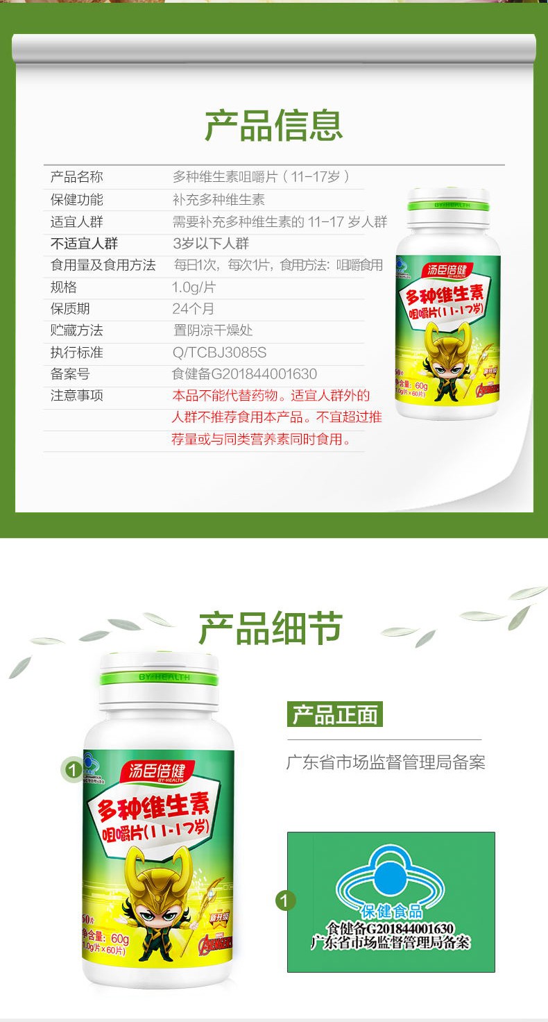 多種維生素咀嚼片(11-17歲)(湯臣倍健)說明書