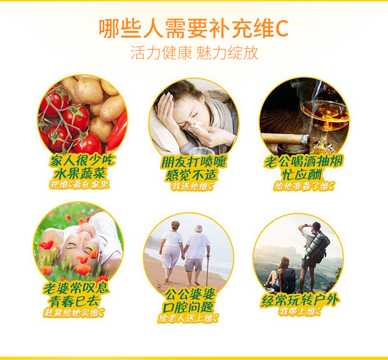 【功能主治】:維生素c補充劑。用于預防和治療壞血病以及各種急、慢性傳染疾病或其他疾病以增強機體抵抗力,病后恢復期、創(chuàng)傷愈合期及過敏性疾病的輔助治療。