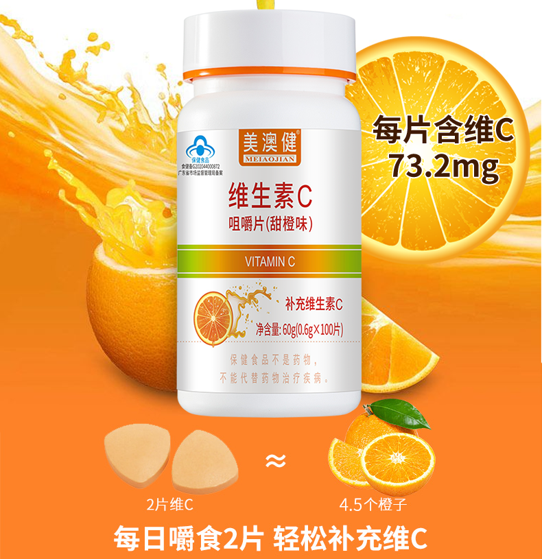 【保健功能】 美澳健維生素c咀嚼片精選美國進口天然西印度櫻桃濃縮物作為維生素c的全部來源,參考rni標準設計,科學配比,可預防牙齦出血、貧血、心腦血管病癥,具有提高人體免疫力、強健身體的功效。