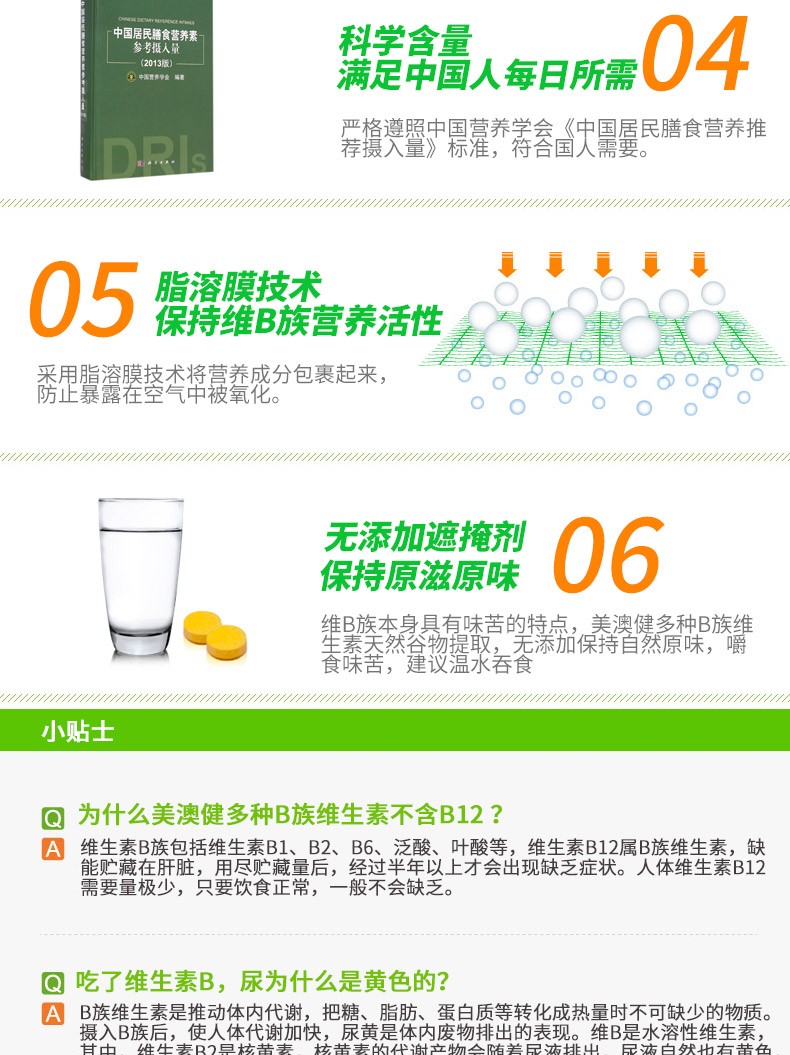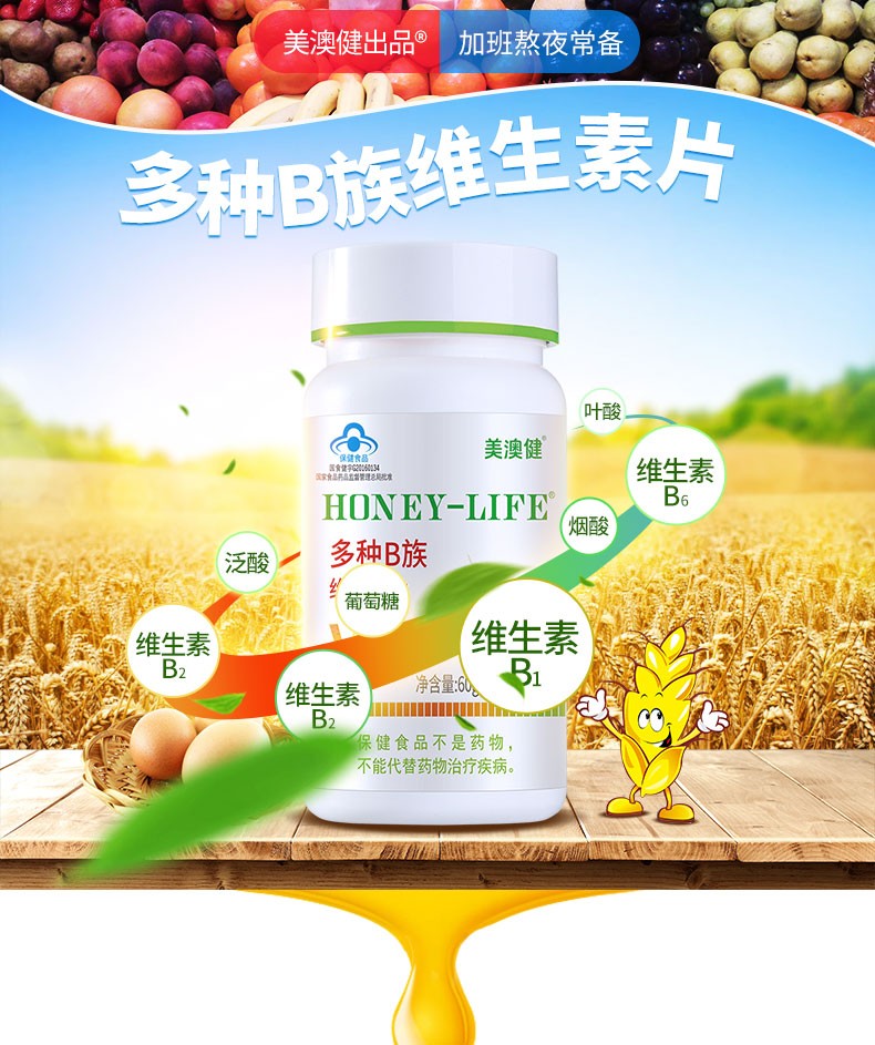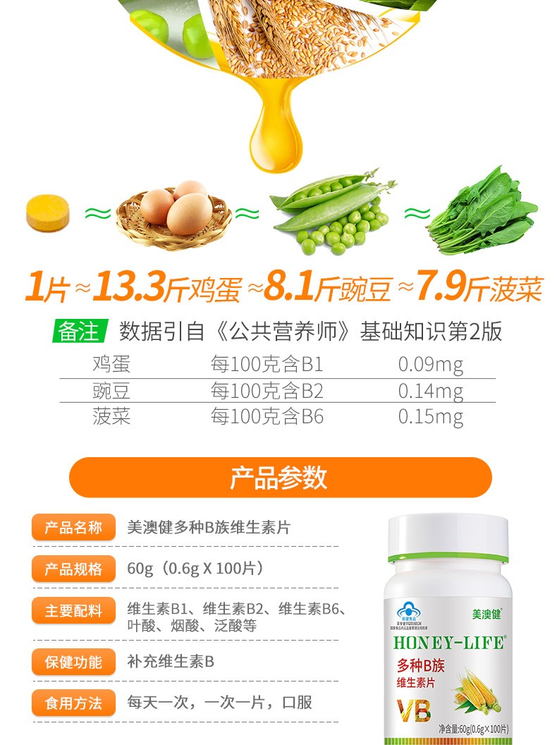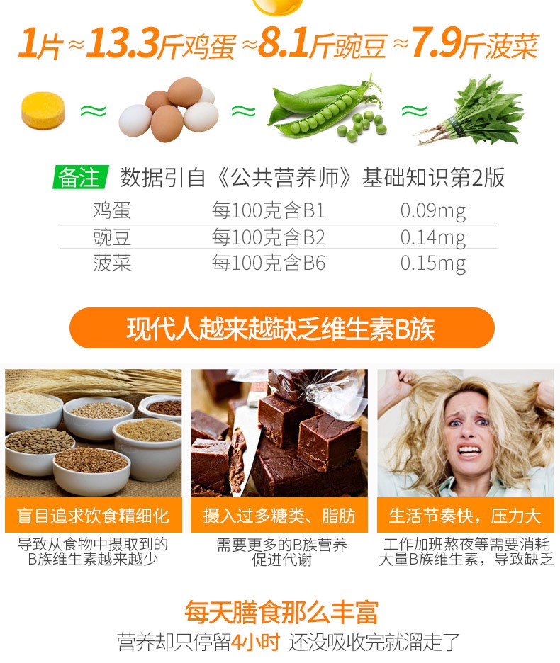 | 成分原料 | 維生素b1(鹽酸硫胺素)、維生素b2(核黃素)、維生素b6(鹽酸吡哆醇)、維生素b12(氰鈷胺素)、葉酸(蝶酰谷氨酸)、煙酸(尼克酸)、泛酸鈣(d-泛酸鈣)、淀粉、糊精、硬脂酸鎂。 |