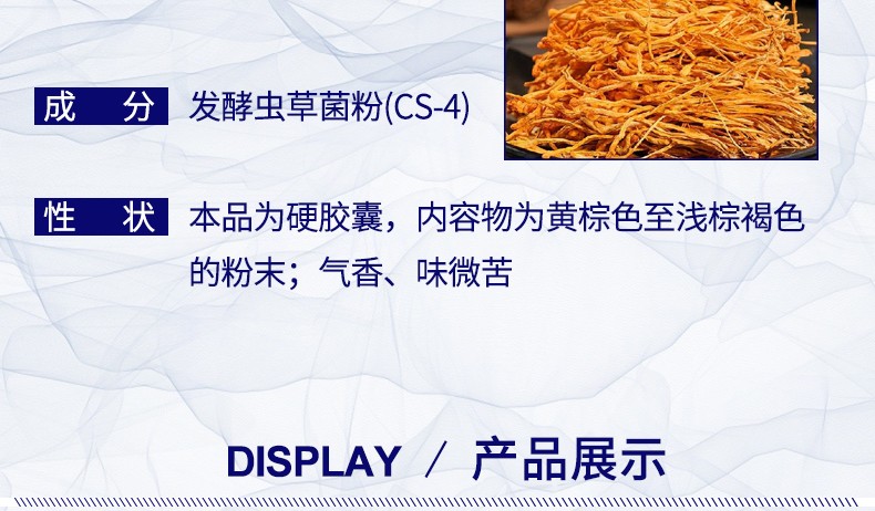 【藥品成份】發(fā)酵蟲草菌粉(cs-4)。