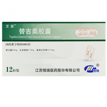 藥師點評:奧替拉西鉀口服給藥后主要對消化道內(nèi)分布的乳清酸磷酸核糖基轉(zhuǎn)移酶有選擇性拮抗作用,用于治療胃癌、頭頸部癌和多種晚期轉(zhuǎn)移癌等。替吉奧膠囊的優(yōu)點是毒副作用不明顯于其他的藥物,口服給藥,方便臨床患者用藥。