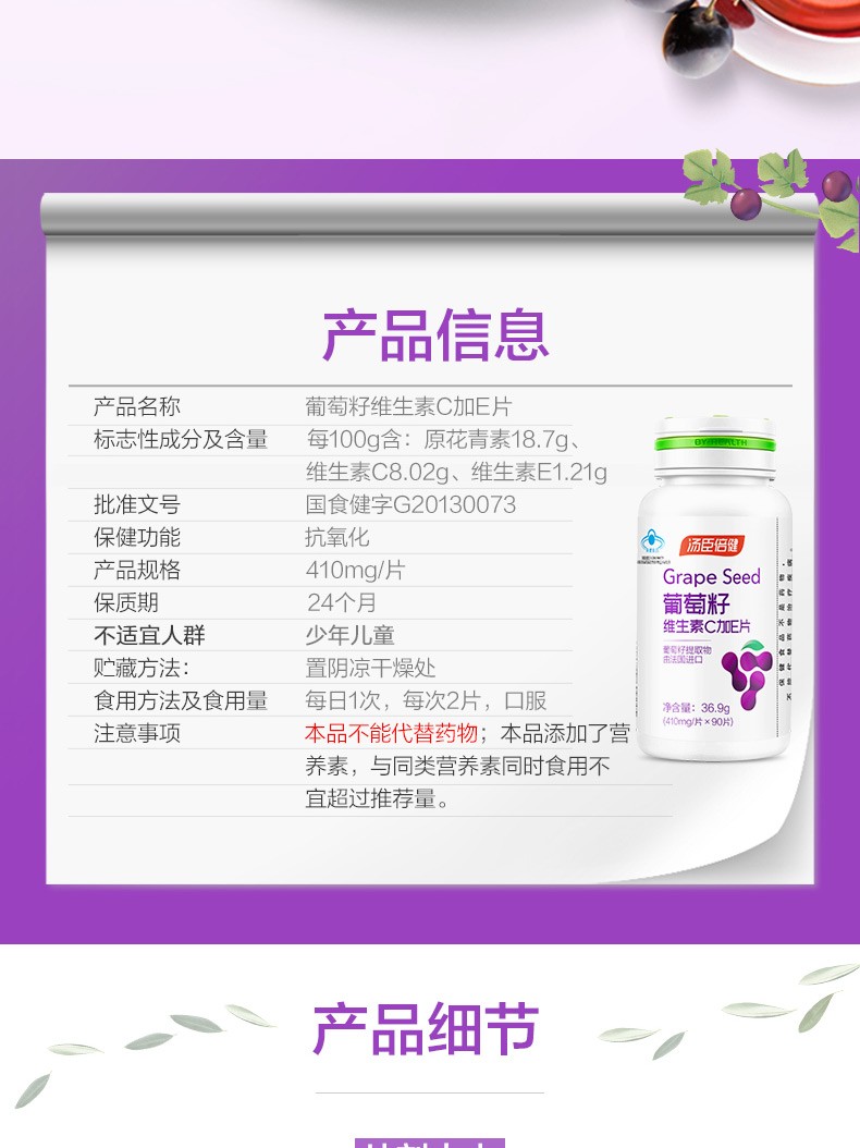 葡萄籽維生素C加E片(湯臣倍健)說明書