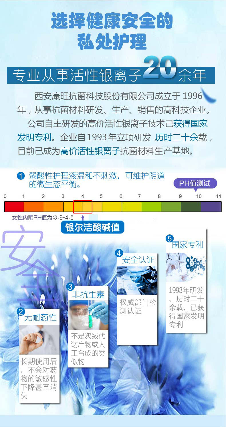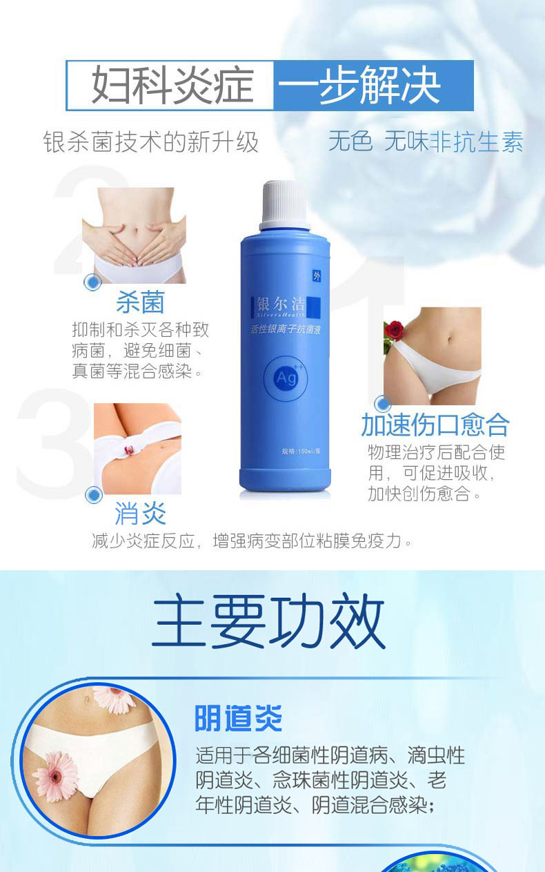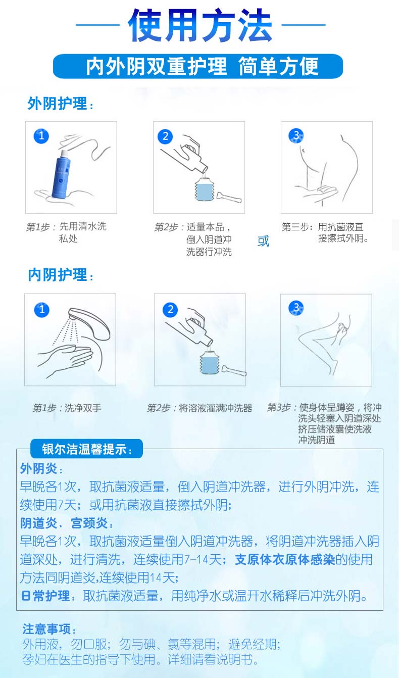| 成分原料 | 主要由活性銀離子抗菌液和陰道沖洗器組成。 |