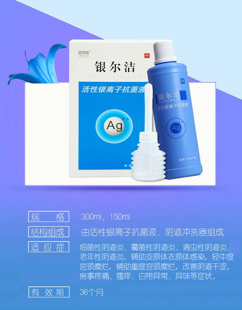 【藥品成份】主要由活性銀離子抗菌液和陰道沖洗器組成。