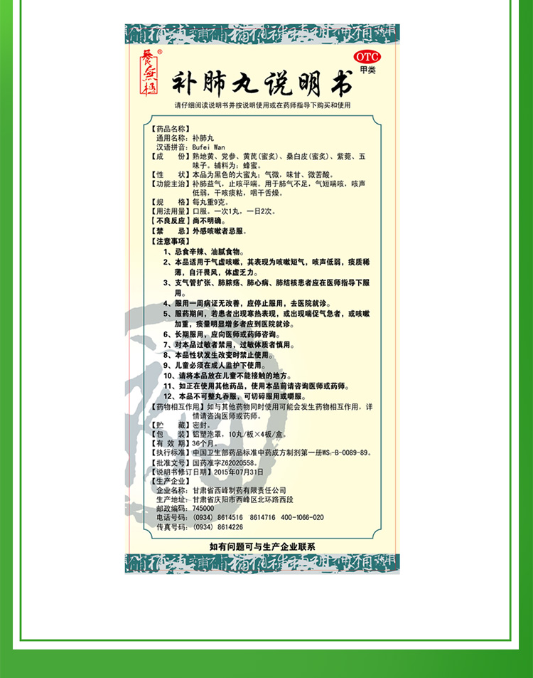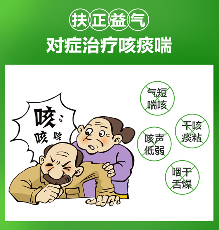 | 適用癥狀 | 補肺益氣,止咳平喘。用于肺氣不足,氣短喘咳,咳聲低弱,干咳痰粘,咽干舌燥。 |
