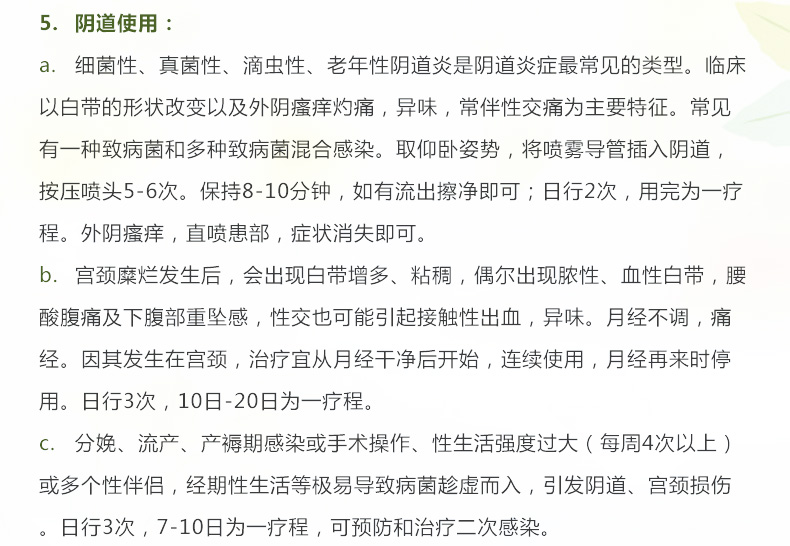 1、細菌、真菌、病毒性皮膚感染;如皰疹、尖銳濕疣、念珠菌包皮炎,各種癬癥;用本品直噴患部,日行3次。癥狀消失即停用。
