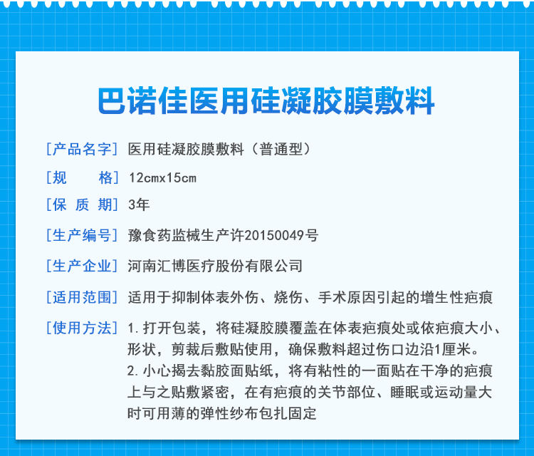 | 藥名品牌 | 醫(yī)用硅凝膠膜敷料(巴諾佳) |