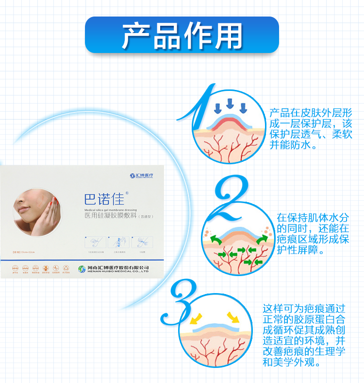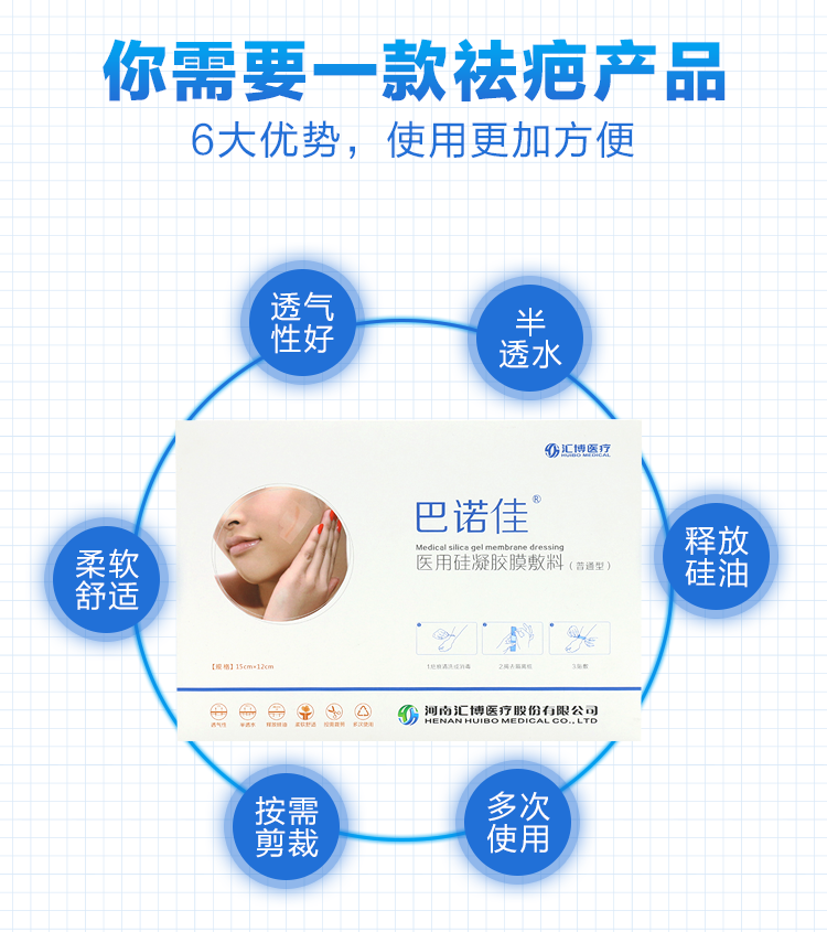 | 適用癥狀 | 適用于體表外傷、燒傷及手術(shù)愈合后的增生性疤痕的輔助治療。 |