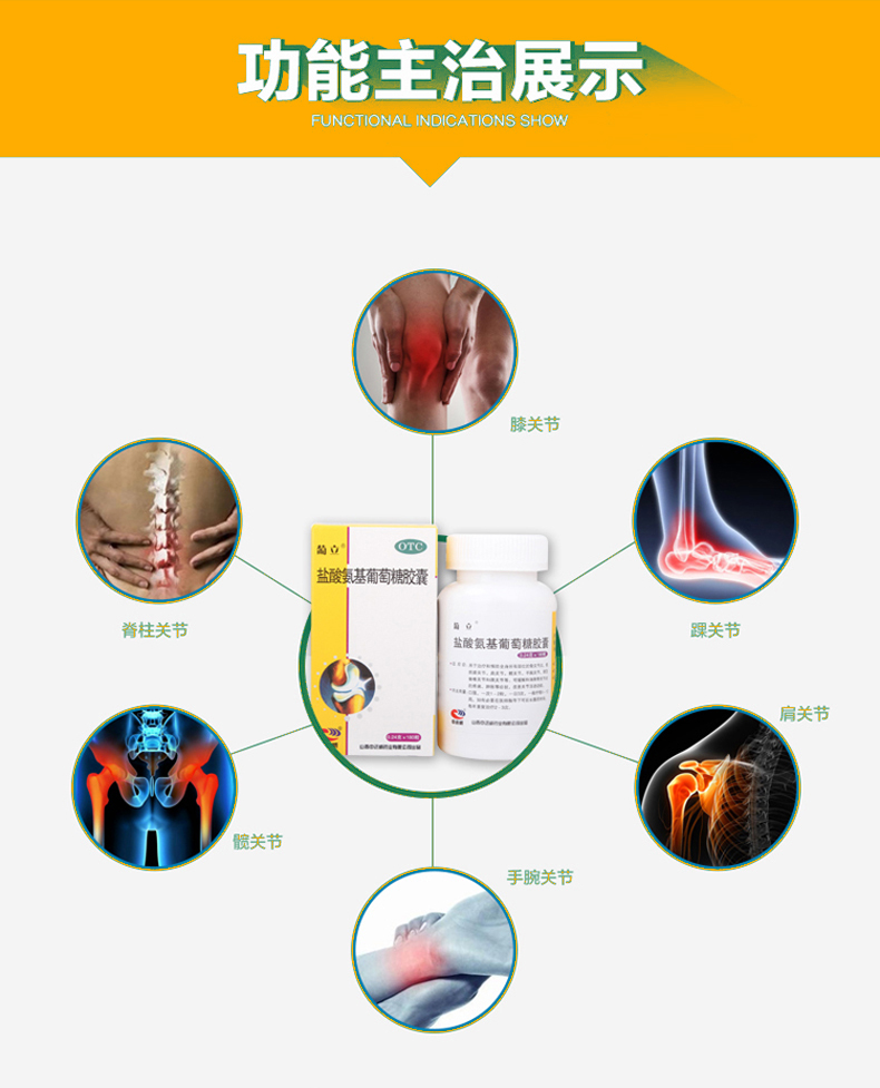 【功能主治】:用于治療和預防全身各種關節(jié)的骨性關節(jié)炎,包括膝關節(jié)、肩關節(jié)、髖關節(jié)、手腕關節(jié)、頸及脊椎關節(jié)和踝關節(jié)等??删徑夂拖切躁P節(jié)炎的疼痛、腫脹等癥狀,改善關節(jié)活動功能。