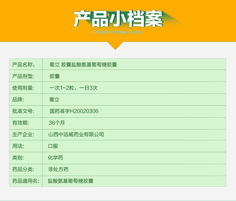 商品名稱:鹽酸氨基葡萄糖膠囊(葡立)
