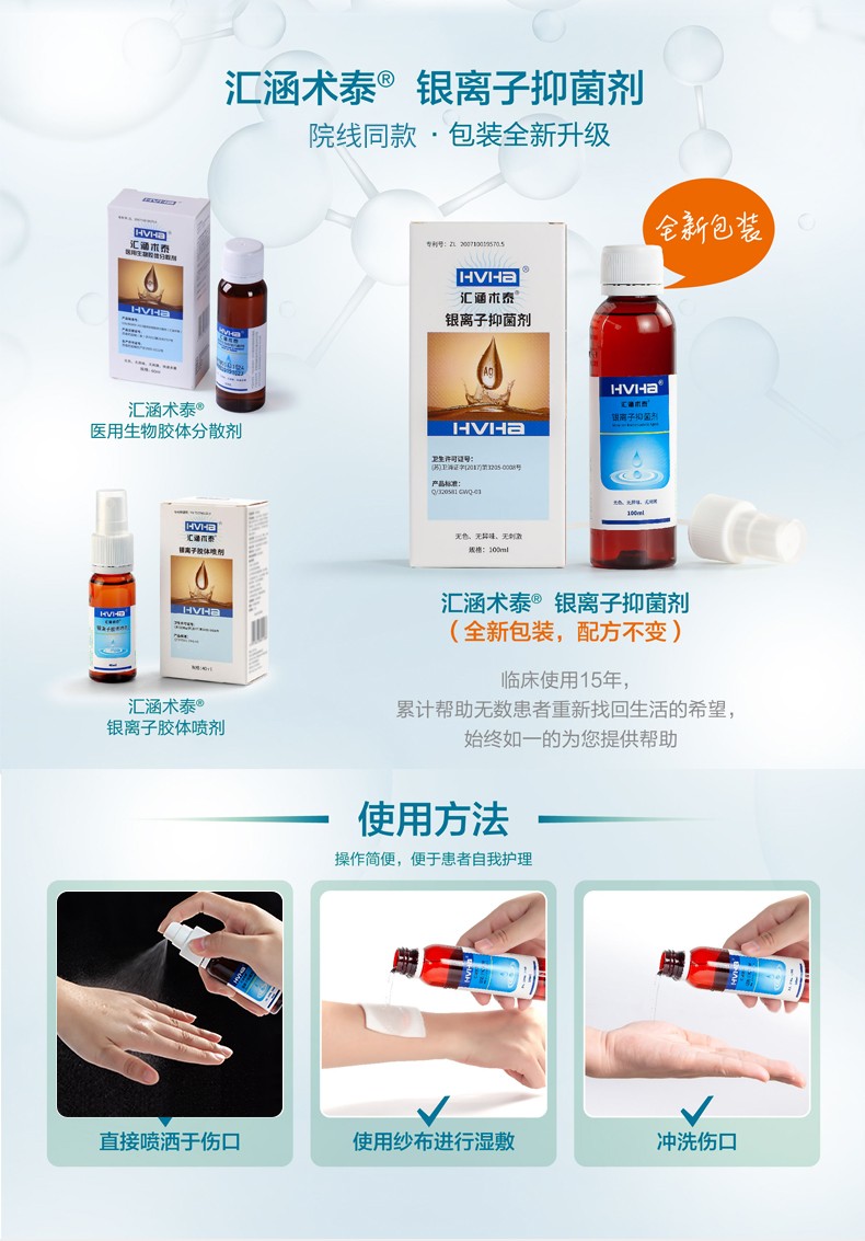 銀離子抑菌劑(原名醫(yī)用生物膠體分散劑)(匯涵術(shù)泰) |