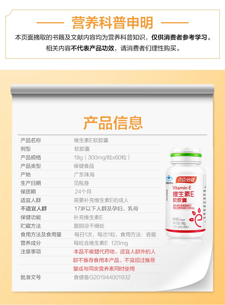 天然維生素E軟膠囊(湯臣倍健)說明書