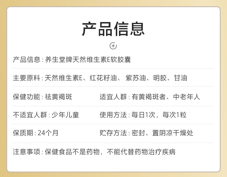 | 成分原料 | 天然維生素e、紅花籽油、紫蘇油、明膠、甘油。 |