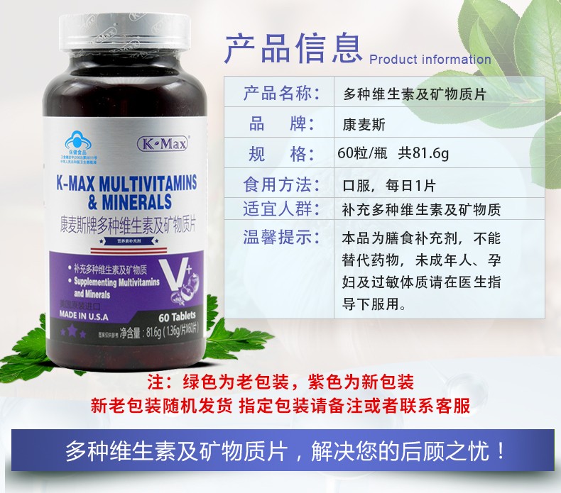 商品名稱:康麥斯牌多種維生素及礦物質(zhì)片