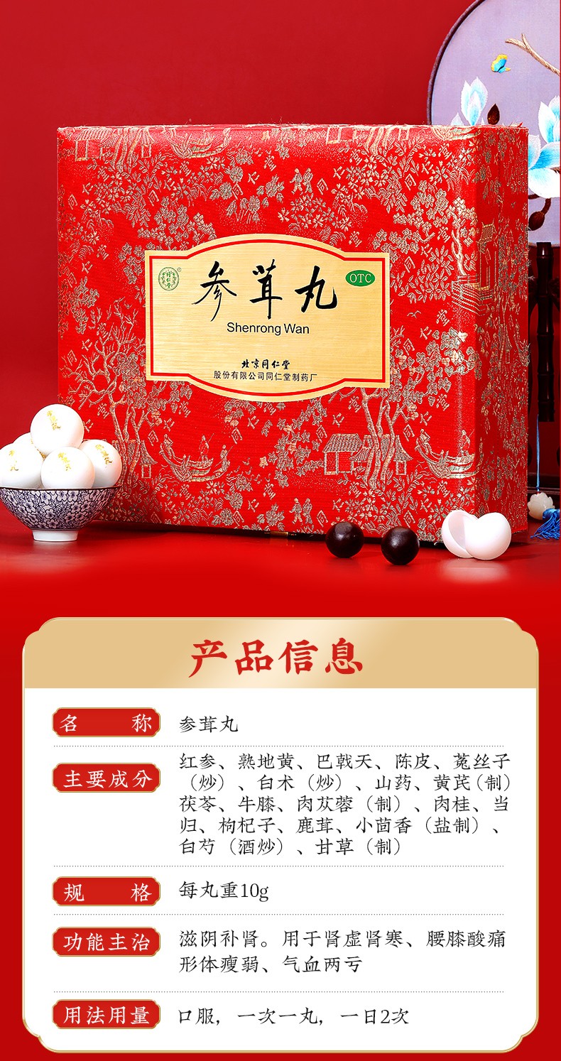 | 藥名品牌 | 參茸丸(同仁堂) |