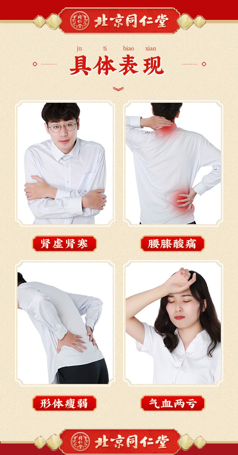 【主要作用/適應癥】 滋陰補腎,益精助陽。用于腎虛腎寒,陽痿早泄,夢遺滑精、腰腿酸痛,形體瘦弱,氣血兩虧。