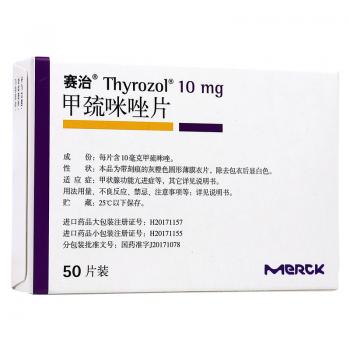【功能主治】:抗甲狀腺藥物。適用于各種類型的甲狀腺功能亢進(jìn)癥,尤其適用于:病情較輕,甲狀腺輕至中度腫大患者,青少年及兒童、老年患者;甲狀腺手術(shù)后復(fù)發(fā),又不適于用放射性131i治療者;手術(shù)前準(zhǔn)備。