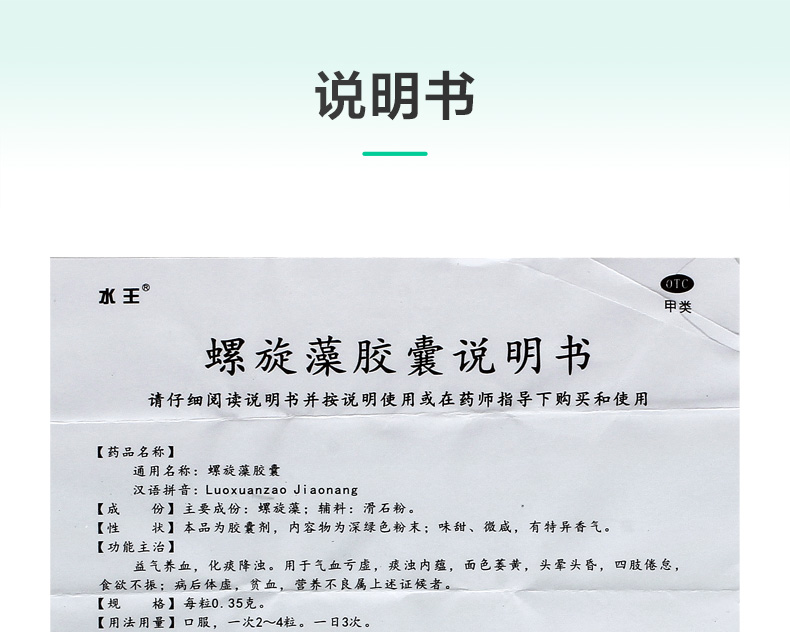 | 藥名品牌 | 螺旋藻膠囊(水王) |