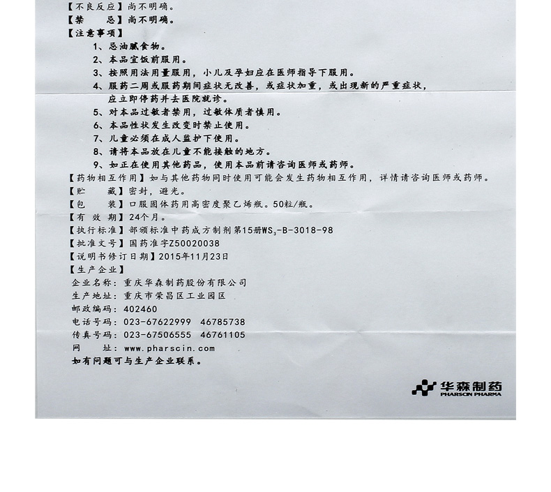 | 生產(chǎn)廠家 | 重慶華森制藥有限公司 |